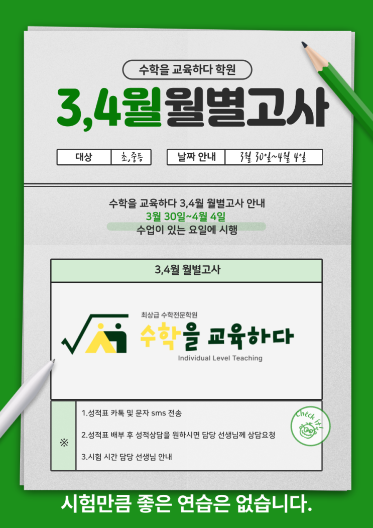 "수학을 교육하다"학원 2026년 3월 30일~4월 4일 월말고사 일정안내