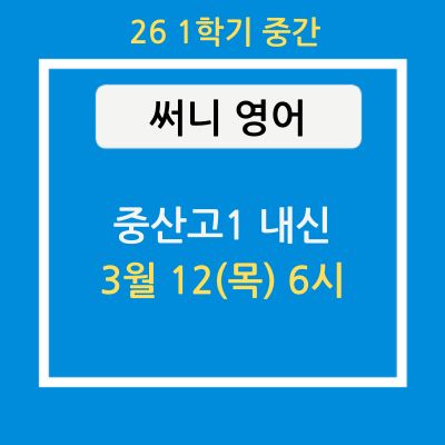 수능 기초~완성까지 < 써니 영어는 의치대 입학의 필수 코스 > ● 서울대 의대 수석 (입학~수능까지 36개월 수강), ● 연,고대 인문대 수석, ● 고려대 의대 차석, ● 연세대, 가톨릭대, 경희대, 중앙대 의대 수석 배출 ■써니 영어 특징 "상위권 학생들의 2% 부족한 부분도, 기본기가 부족해 단어 조합으로 대충 해석하는 학생도, 한글 해설지를 읽어도 무슨 내용인지 파악 불가 학생도, 1:1 과외처럼 각각의 약점을 파악해서 학생에게 끊임없이 질문해 스스로 사고하도록 유도하는 수업" 1. 핵심을 확실하게 알려드립니다. 2. 쉽게 설명합니다. 3. 출제자의 입장에서 접근합니다. <중산고1 영어 내신반> 3/12(목) PM 6~9....... <img src="https://blogthumb.pstatic.net/MjAyNjAxMzFfMjUz/MDAxNzY5ODU3NTU4ODE2.ptZ8afXHKD2Kr8UsKyZ7tyv8EM70id-sNIoWR-9Qk2sg.jCwA5kshPQNmRoFSBK9dzjjE5Hm_JJgbT-jS0cgUtV4g.JPEG/25_%BF%A9%B8%A7_%BD%E1%B4%CF_%BC%F6%B4%C9%BF%B5%BE%EE.jpg?type=s3" />