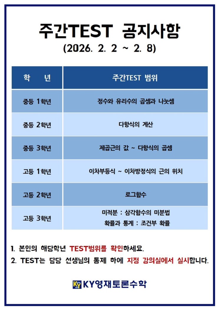 2026년 2월 1주차 주간테스트 공지사항