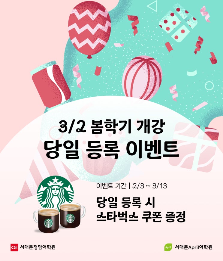 [서대문 청담/에이프릴] 3/2 봄학기 개강! 당일 등록하고 스타벅스 쿠폰 받으세요