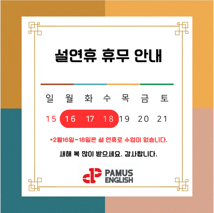 ♡파머스영어 가재울캠퍼스♡ 설날 연휴 휴무일 안내드립니다!