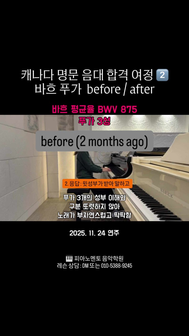 캐나다 음대 입시 합격 여정 ② 바흐 푸가, 2개월간의 Before & After [클래식피아노입시 피아노멘토]