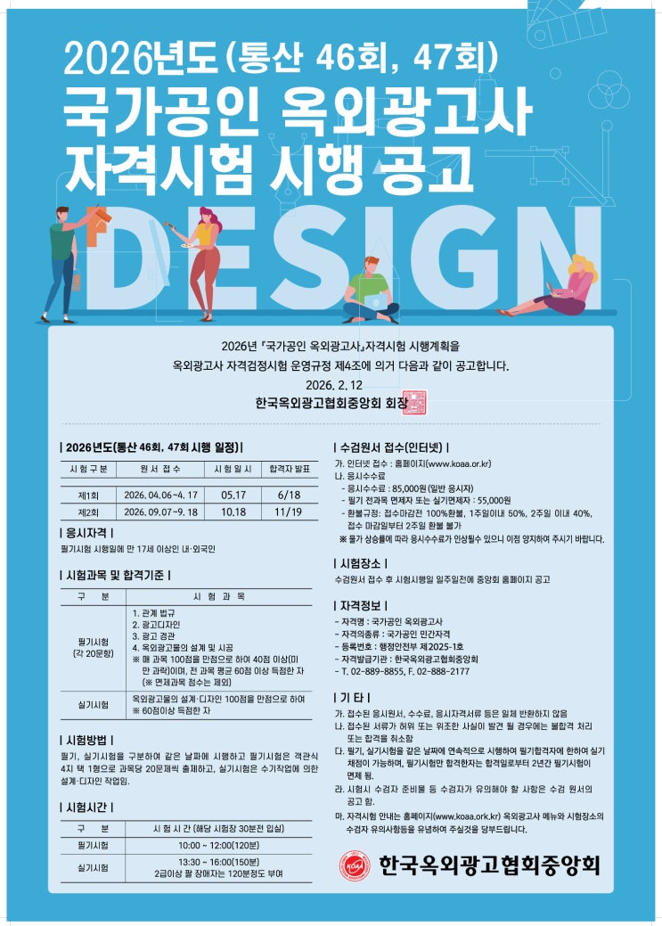 2026년 옥외광고사 시험 원서 접수-한국 옥외광고사 학원 매주 수시 개강!