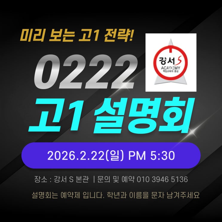 [강서에스S학원] 예비고1 학부모님들과 학생들을 위한 2월에 시작되는 8회 수학 과학 단기 완성 과 학교별 입시전략