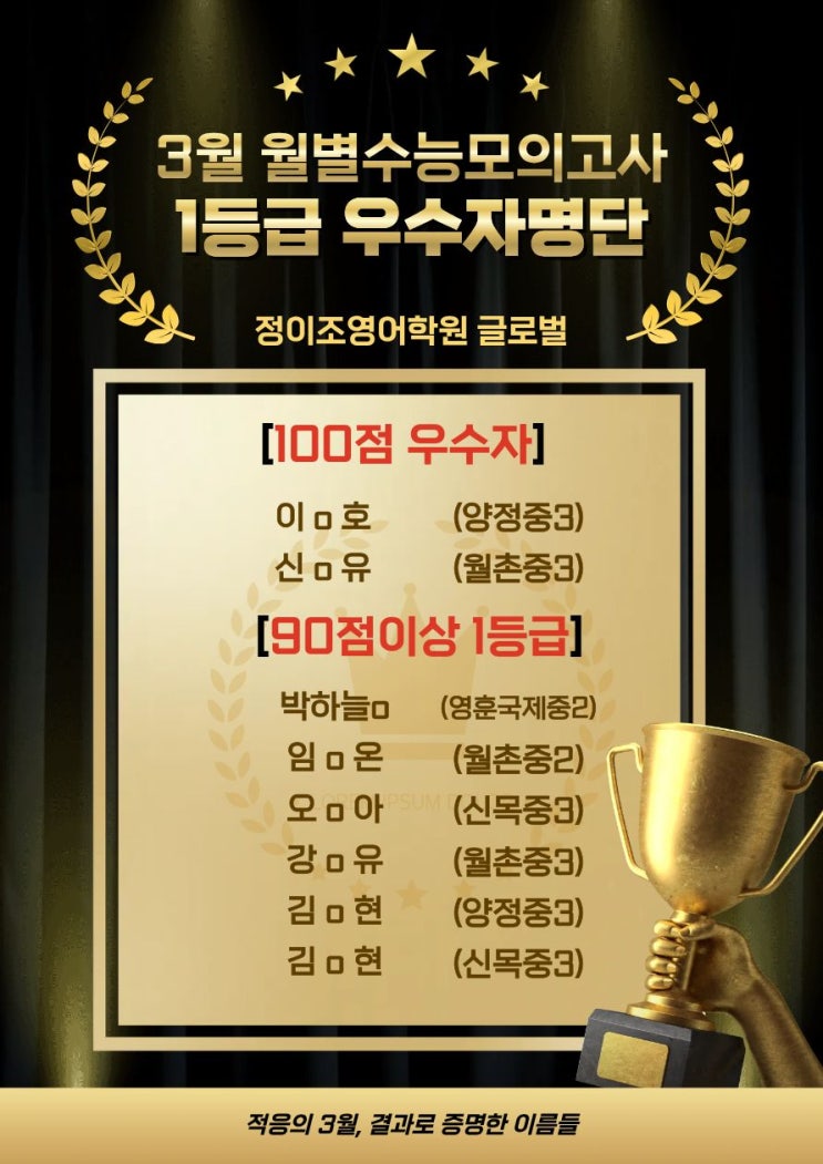 [정이조영어학원 글로벌] 3월 월별수능모의고사 우수자