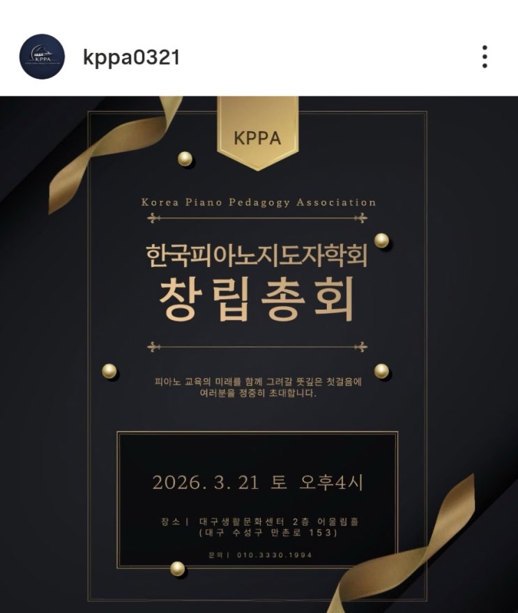 ️세계적인 피아니스트이자 교육자이신️ 이미연 교수님이 회장으로 계시는 한국피아노지도자학회라는 뜻깊은 자리에 초대를 해주셔서 회원으로 활동하게 되었습니다☺️ 제자 서빈이의 연주기회도 주시고 감사합니다 적당히에 만족하지 않는, 항상 아이들에게 질좋은 레슨과 음악의 길을 열어줄 수 있도록 공부하고 연구하는 선생님이 되려합니다 실력으로 보답하겠습니다 시작은 같지만 결과는 다릅니다 한화포레나포항 상가 203동301호 010-2772-0705 경력20년,10년,5년 실력자 쏜생님들 포항최대규모 108평 그랜드피아노7대,업라이트17대 CCTV, 등하원알림은 기본 세스코 바이러스 관리케어 ?....... <img src="https://blogthumb.pstatic.net/MjAyNjA0MDhfMTc3/MDAxNzc1NjQ1MjMxMTM1.bA3WSdvI92gpvXp0QEf_p_LcfaO0Ibcy0FhegP1EokMg.djPpsEa-JQwjTi55o5VUEDDHYem8G2GsTU7Xee0s7bsg.JPEG/900%A3%DFScreenshot%A3%DF20260311%A3%DF131851%A3%DFInstagram.jpg?type=s3" />