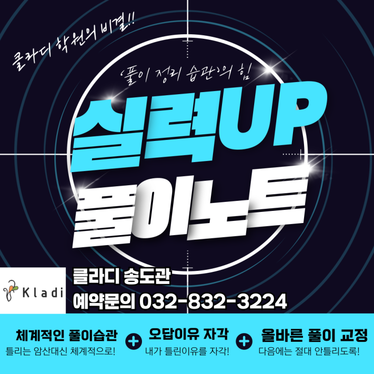 안녕하세요, 클라디 송도관입니다. 수학 성적을 좌우하는 것은 단순한 문제 풀이량이 아니라 어떻게 공부하느냐, 즉 학습 습관입니다. 많은 학생들이 문제를 풀 때 정답만 맞히는 데 집중하고, 풀이 과정이나 틀린 문제에 대한 복습은 소홀히 하는 경우가 많습니다. 하지만 저희 클라디 송도관에서는 학생들이 스스로 사고하고, 체계적으로 정리하는 힘을 기를 수 있도록 조금 특별한 학습 방법을 지도하고 있습니다. 클라디 송도관에서는 학생들에게 문제집에 바로 풀이를 작성하지 않도록 지도하고 있습니다. 그 이유는 단순합니다. 풀이를 더 논리적으로, 체계적으로 정리하는 습관을 만들기 위함입니다. 1. 풀이과정은 따로, 더 깔....... <img src="https://blogthumb.pstatic.net/MjAyNjA0MDJfMTQ3/MDAxNzc1MTI0NzAzNjY3.7pq_xu3yv0HfIeNnsYfaeHGrTLSaAqIHMmSngBOi2MEg.vGwZHPVKreqsn1LggCAr60MdUG7CJ39uiDQXVd8FPTwg.PNG/%C1%A6%B8%F1%C0%BB-%C0%D4%B7%C2%C7%D8%C1%D6%BC%BC%BF%E4_-001.png?type=s3" />