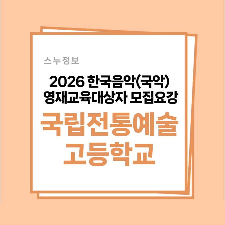 [스누정보] 2026학년도 국립전통예술고등학교 음악영재교육대상자 선발 모집요강(전예고 음악영재, 전예고 영재교육, 음악영재교육 모집)