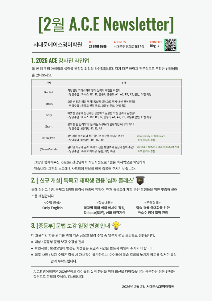 #영어학원 #영어문장해석 #영어독해연습 #고등영어공부 #영어문법 #영어어휘 #수능영어준비 #서대문구영어학원 #연희동영어학원 #서대문에이스영어학원 #서대문에이스학원 #에이스영어학원 #서대문초등영어 #서대문중등영어 #서대문고등영어 #연희초 #홍연초 #정원여자중 #연북중 #동명여중 #인왕중 #연희중 #인창중 #이대부중 #연서중 #신연중 #홍은중 #서연중 #명지중 #명지고 #충암고 #이대부고 #상명여고 #인창고 #경복고 <img src="https://blogthumb.pstatic.net/MjAyNjAyMDJfMTc2/MDAxNzcwMDEwODU4MTkw.RnifeSzPeG_wYHjxwIZ7Lnz4o5apXqM6EsMpqeWbTmQg.lnqY1yQlYnzLQ-E36LID7nwlVR8mjStgWe4mc3qwUm4g.PNG/KakaoTalk_20260202_134412439.png?type=s3" />