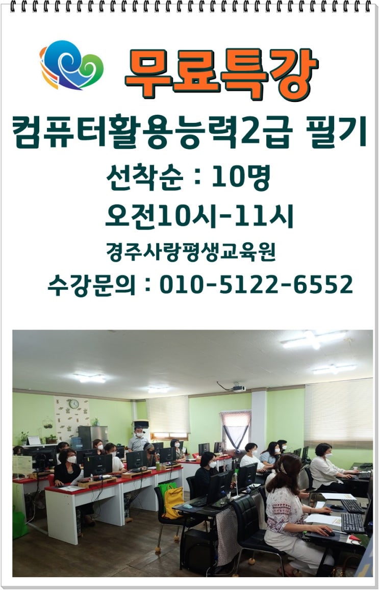 [경주] 컴활 2급 필기 한 달 완성! 경주사랑평생교육원 무료특강 수강생 모집