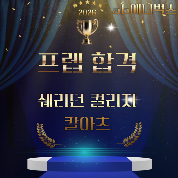 안녕하세요, ab애니벅스 프렙입니다. 이번 입시에서 정말 기쁜 소식이 이어지고 있습니다! 먼저, 디몬헌터스 감독 매기강이 졸업한 바로 그 학교 세계적인 애니메이션 명문 쉐리던(Sheridan College) 그 목표를 향해 준비해온 학생들의 결과가 이번 입시에서 확실하게 나타났습니다. 캐나다의 명문 아트스쿨인 쉐리던(Sheridan College)에서 기존 6명 합격에 이어 추가 1명 합격 소식까지 더해져 총 7명의 합격생을 배출하게 되었습니다! 그리고 이어서, 미국 최고의 예술대학 중 하나인 칼아츠(CalArts, California Institute of the Arts)에서도 1명의 합격 소식이 전해졌습니다 꾸준한 노력의 결과 이번 결과는 단순한 숫자를 넘어서 학생 한....... <img src="https://blogthumb.pstatic.net/MjAyNjA0MDNfNzkg/MDAxNzc1MTkyODc4NzYz.SxcRHyQk2MBg2oeHUsU53B0M04FRfUMtLl4FuOIieDMg.5P124ZQGpRWtFl7Eb30PqNuVvCi7tfOAte-QmlZNE-Ag.PNG/%C1%A6%B8%F1%C0%BB-%C0%D4%B7%C2%C7%D8%C1%D6%BC%BC%BF%E4_-001_-_2026-04-03T140416.431.png?type=s3" />