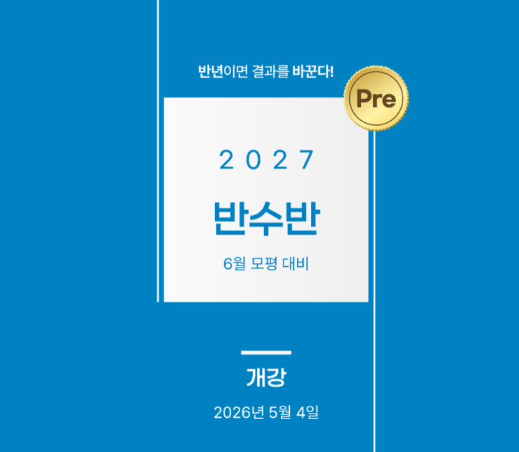 빈틈없는 관리, 틀림없는 결과! 안녕하세요. 노량진 메가스터디학원입니다. 현행 교육과정 마지막 수능 재도전! 마지막 승부를 위한 ALL-IN-ONE 학습 케어! 2027 Pre N수 반수반 안내 드립니다. 모집 개요 입학기준 입학 전형에 해당되지 않는다고 하더라도 무시험 특별 전형- 선착순3으로 상담을 통한 입학이 가능합니다. 수능을 위한 Pre 반수반 커리큘럼 노량진 메가스터디학원 강사진 수능을 준비하는 수험생과 학부모님들께서 가장 중요하게 생각하시는 요소 중 하나는 바로 ‘강사진의 수준’입니다. 노량진 메가스터디학원은 다년간의 입시 지도 경험과 철저한 수능 분석을 바탕으로, 실제 시험에 최적화된 커리큘럼을 완벽하게 소화해낼....... <img src="https://blogthumb.pstatic.net/MjAyNjAzMjdfMjYw/MDAxNzc0NTg3NzE4MzM1.Tyf1zztXvnYLT9E0hXEP2RSLKQrLWX5_sCy6ceCrviwg.yu88KKJ71_PBjn2lEO_jtAjbKgyqK1XGMihizv6V01Ag.PNG/image.png?type=s3" />