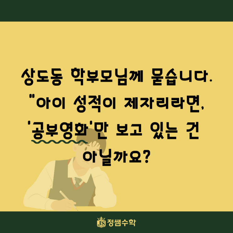 [정쌤칼럼]학원을 다녀도 성적이 오르지 않는 이유!-부제-'공부 영화'만 보고 온 것은 아닐까요? [숭실대역 수학학원 수학전문학원 정쌤수학]