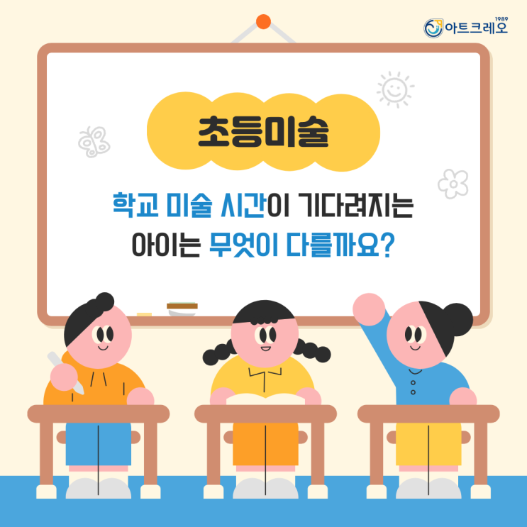 안녕하세요 생각을 그려낼 줄 아는 아이 아트크레오입니다. 초등미술에서 중요한 건 ‘그림 실력’이 아니라 ‘생각하는 힘’입니다. 아이들이 초등학교에 입학하면 부모님들은 이런 고민을 많이 하십니다. “집에서는 잘 그리는데 학교에서는 머뭇거려요” “주제가 어려워지면 자신 없어 해요” 초등미술 시간은 단순히 그림을 그리는 시간이 아니라 주제를 이해하고 자신의 생각을 표현하는 시간입니다. 그래서 초등미술에서 중요한 건 ‘얼마나 잘 그리느냐’가 아니라 ‘얼마나 자신 있게 표현하느냐’입니다. 아트크레오는 이 부분을 중심으로 아이의 변화를 만들어냅니다. 어떤 주제도 풀어내는 ‘생각의 구조’ 초등미술 수업....... <img src="https://blogthumb.pstatic.net/MjAyNjA0MDJfMzgg/MDAxNzc1MTEwMTEwNTc3.u6cB37Nqy_6zSRmMyLTntf7TYa1p-JYCoKwerODg5xMg.kQCdYn7lEKepW8wS0-eu_o7wg-5M9rzvK4QXvAGI11Ug.PNG/1.png?type=s3" />
