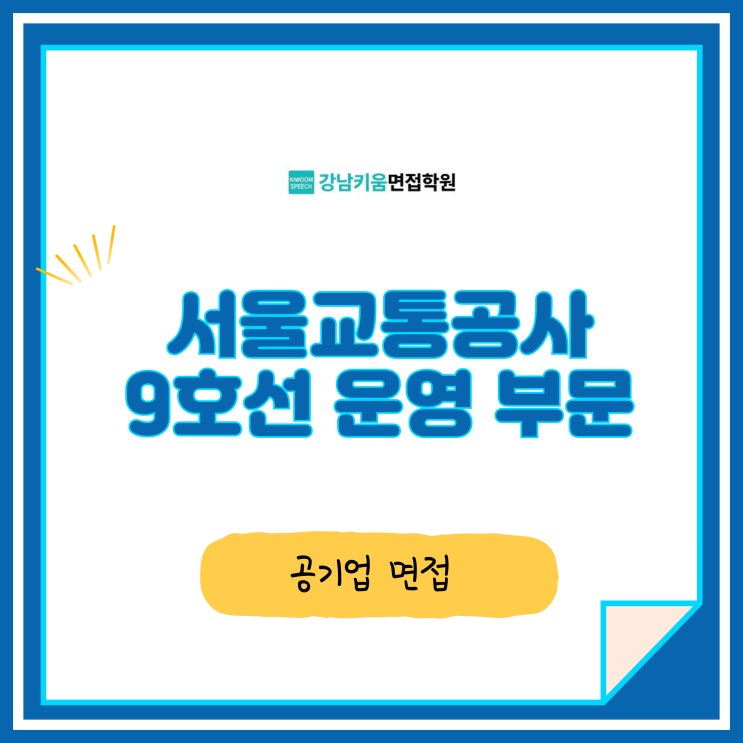 안녕하세요 강남키움스피치면접학원입니다. 지난 24일 토요일 서울교통공사 9호선 운영 1차 필기시험이 치러졌습니다. 1차 합격자 발표는 1월 30일, 면접은 2월 10일에 진행되는데요. 합격자 발표 이후 면접일까지 준비 기간이 10일 정도 밖에 되지 않기에 지금부터 면접 기본기를 다져놓는 것이 중요합니다. 특히 서울교통공사 9호선 운영의 경우, 서울교통공사, 서울 메트로 9호선과 헷갈려하는 지원자들이 많기에 내가 어떤 회사에 지원했는지 다시 한 번 꼼꼼히 살펴보고 서울교통공사 9호선 운영 면접은 어떻게 진행되는지, 관련 이슈는 무엇인지 파악해야 합니다. 서울교통공사 9호선 운영 면접은 전형적인 공기업 구조화 면접 형식이며, 지....... <img src="https://blogthumb.pstatic.net/MjAyNjAxMjhfOTgg/MDAxNzY5NTgwMjg0Mjc5.NktFEc8yB0DyXGFsRyOOp-jCjqpnWiKmiNgt4GmO3cQg.yuy6M-6eXJUYgTW26xWyLxFQb_q6DxDiUotDhGUuOxwg.JPEG/001.jpg?type=s3" />