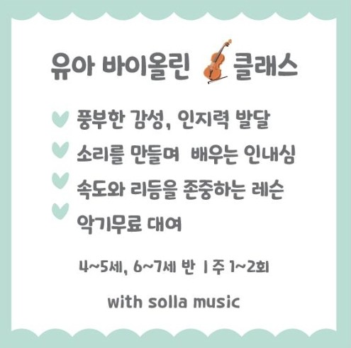 안녕하세요~ 솔라쌤입니다. 솔라에서는 유아 학생들을 위한 바이올린 수업이 있습니다. 4~5세, 6~7세 반을 나누어 수업합니다. 연령에 따라 수업 시간과 수업료 수업 방법의 차이가 있습니다. 글자도 모르고 제대로 수업이 힘들 것 같은데, 왜 어릴 때 바이올린 교육이 아이에게 도움이 되는 걸까요~ 바이올린을 어릴 때 배우면 아이에게 어떤 좋은 영향을 주는지 알아보겠습니다. 1. 두뇌의 시냅스를 연결하는 인지력 발달 바이올린은 현을 누르는 왼손과 활을 켜는 오른손이 완전히 다른 동작을 수행해야 합니다 이 과정에서 좌뇌와 우뇌가 쉴 새 없이 소통하며 두뇌 발달을 촉진합니다 그리고 악보를 보고 손가락 번호를 생각하며 소리를 내는....... <img src="https://blogthumb.pstatic.net/MjAyNjAxMjlfMjQy/MDAxNzY5NjY4ODY5OTcz.KQ-2SuL_xn47CExFy5-mDCTCqzxR8eIpFPVxpyQa-u4g.eHSTjNhu9sm44TeF-NbbiuTb0-LF620QR47ZAIcxWpwg.PNG/image.png?type=s3" />