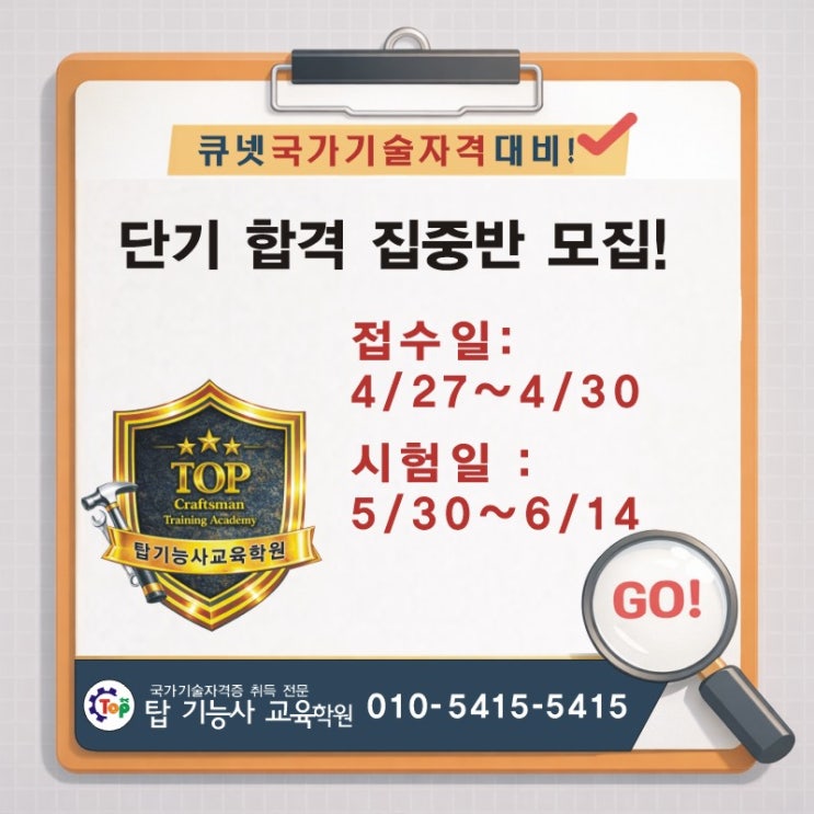 [큐넷] 2026년 제2회 국가기술자격 대비 실기 중심 기능사과정 수강생 모집!(장소변경 / 빈자리접수)