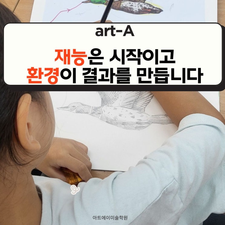 잘 그리는 아이는 우연히 만들어지지잘 않습니다. 미술을 오래 가르치다 보면 '저 아이는 원래 재능이 있잖아요.'라는 말을 자주 듣습니다. 맞는 말입니다. 재능은 분명 존재합니다. 하지만 동시에, 우리는 너무 많은 아이들을 보아 왔습니다. 재능이 있었지만 기다려주지 못해 꺼져버린 경우도, 조급함 속에서 방향을 잃어버린 경우도 말입니다. 그래서 아트에이는 "재능을 발견하는 곳이 아니라,재능을 지켜주는 곳이 되려고 합니다. 재능은 시작점이지, 결과가 아닙니다 실제로 이아이는 형태감각이 좋았고, 관찰력이 뛰어 났으며, 처음부터 그림을 어려워 하지 않았습니다. 분명 그림에 대한 재능이 있어 보였습니다. 그러나....... <img src="https://blogthumb.pstatic.net/MjAyNjAxMjRfMjY2/MDAxNzY5MjI0MzU5NDgx.TdFRMKACHShZFrS2LHcE1dH-jkgOtrktllD7xOqpDeog.L07fzPadsUKEN75OX3C3tsRPGwIc3fw5Ny5CtjceRdQg.JPEG/6.jpg?type=s3" />