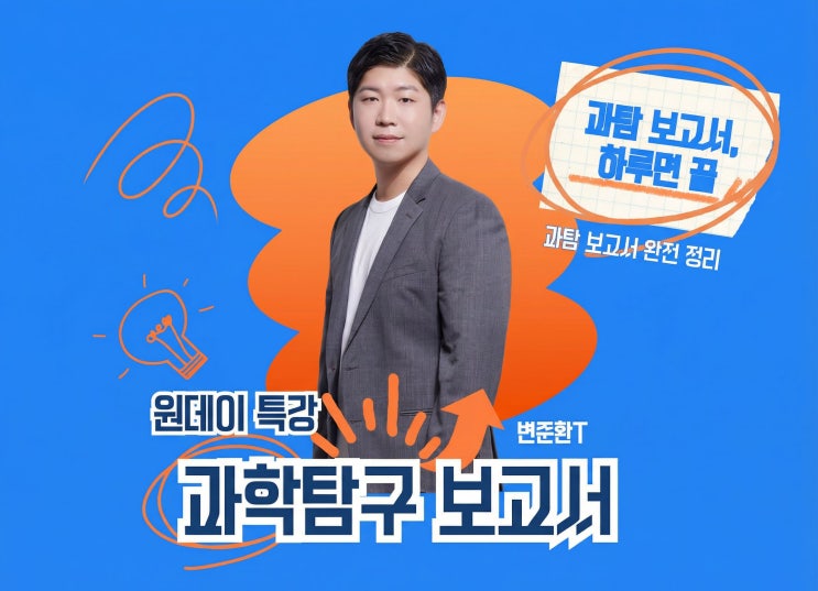 요즘 중등 아이들 보면요, 과학탐구 보고서에서 많이 막혀요 “주제 뭐 하지…?” “이거 그냥 쓰면 되는 거야?” “실험 망했는데 어떡하지…?” 이런 얘기 진짜 많이 나옵니다. 그래서 준비했어요 과탐 보고서 원데이 특강 이 수업은요, 보고서를 “잘 쓰는 법”을 처음부터 끝까지 하루에 딱 정리해주는 수업이에요. 솔직히 보고서… 그냥 열심히 쓴다고 잘 나오는 게 아니거든요 제대로 안 잡히면 시간만 쓰고 결과는 아쉬워지기 쉽습니다. ✔ 특히 이런 학생들 추천드려요 ✔ 보고서 처음 써보는 중학생 ✔ 매번 방향 잡기 어려운 학생 ✔ 열심히는 하는데 결과가 아쉬운 경우 “대충 쓰는 법” 이 아니라 제대로 쓰는 방법을 배우는 수업입....... <img src="https://blogthumb.pstatic.net/MjAyNjA0MDRfMjUy/MDAxNzc1MzA0NTYxNTE0.OhHvHVr72tXz8GylheZuJHljVRaDvtz18IdvxLlUmDIg.lifQSAT7M-h_Ug4t7WPI0VOgBLtTGC2ZpWNe1UFN2xYg.JPEG/AIDrawing_260404_636b6ce0-1654-4a79-9647-837317671c12_0_MiriCanvas_%281%29.jpg?type=s3" />