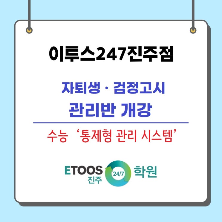 [진주 이투스247 독학재수학원] 자퇴생·검정고시 관리반 개강 ~