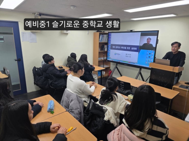 안녕하세요. 써니사이드 원장 이화연입니다. 예비 중1을 위한 특강을 써니사이드 학원에서 할 수 있는 좋은 기회가 지난주 금요일에 열렸습니다. 장소는 초중관이 아니고 고등관에서 했는데요^^ 아이들이 처음 가본다고 신기해 했습니다 이번 특강은 대치동에서 입시전문가로 유명하신 박인오 소장님께서 진행해 주셨습니다. 써니사이드 학원에서는 오프라인으로 온라인으로는 다른 학원 학생들도 함께 듣는 On&Off 동시에 진행하는 특강이었습니다. 갑작스럽게 잡힌 특강이어서 많이 참여할까 걱정했는데 써니사이드학원 예비 중1 아이들이 많이 와주어서 뜻깊은 시간이었답니다. 어서 와! 중학교는 처음이지? 1. 초등학교와 중학교 어....... <img src="https://blogthumb.pstatic.net/MjAyNjAyMDJfMjgw/MDAxNzcwMDMxOTk3NjEy.p4NhisEwG_Nq3tL8NiCMU0v2VmRrJ9soYfBFMR76iMkg.5IV9T1-jr1gwR6Q5b2jrLyDJZc17CDsy2zfwjISYiGwg.JPEG/900%A3%DF20260130%A3%DF190346.jpg?type=s3" />