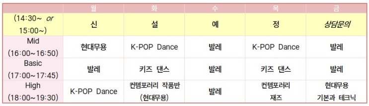 우리아이 무용학원은 역시 <아트모션무용학원&번지피지오> 새학기 시간표(김해무용학원/구산동무용학원/삼계무용학원/구산동댄스학원/삼계댄스학원/김해차량운행)