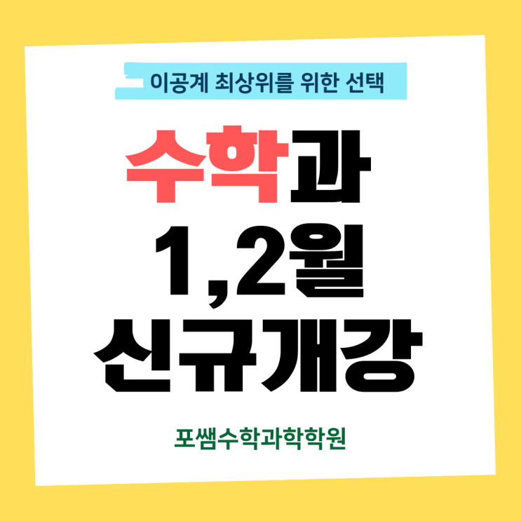 수학과 26년 1월,2월 신규 개강<포쌤수학과학학원>김해율하수학과학학원