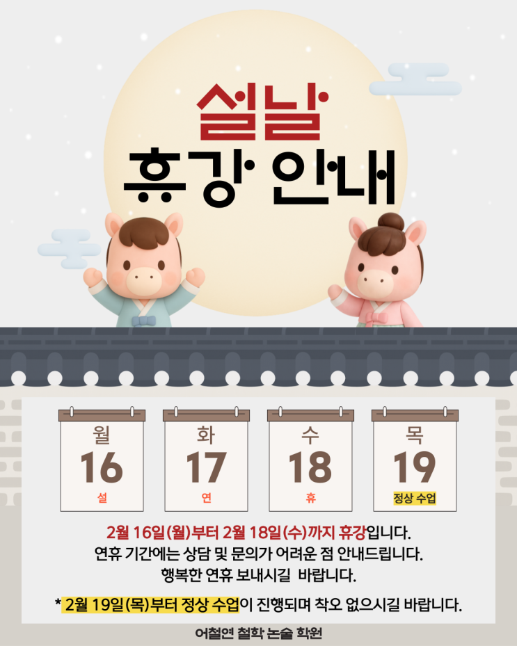 [어철연 철학 논술 학원] 설 연휴 휴강
