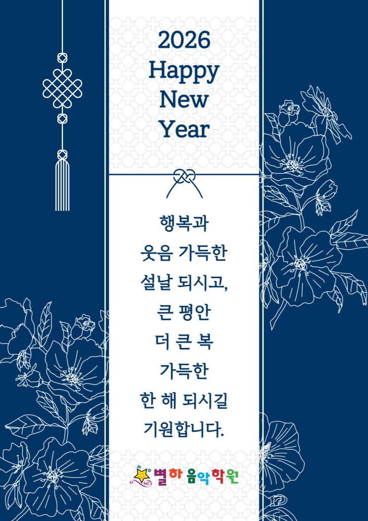 안녕하세요, 장유 관동동 팔판마을 피아노 별하음악학원 입니다. 2026년 한 해 첫 큰 명절 설날, 별하둥이, 별하 학부모님께 인사 드립니다.. 몸도 마음도 따뜻해지는 설날, '걱정보다는, 여유와 온기 가득한 시간' 이 되길 바랍니다. 따뜻한 음식과 웃음이 오가는 식탁, 함께 나누는 정겨운 대화 속에서 작은 행복들이 차곡차곡 쌓이길 바랍니다. 이동 많은 설날 연휴, 무엇보다 안전하고 건강한 휴일 보내시길 바랍니다. 새해 시작이 설렘과 자신감으로 이어지고, 음악을 통해 별하둥이 하루하루도 밝은 에너지로 채워지길 응원합니다. 설날 연휴, 가족과 함께 즐겁고 편한 설날 보내고, 건강한 모습으로 다시 만나요. 장유 관동동 팔....... <img src="https://blogthumb.pstatic.net/MjAyNjAyMTRfMTky/MDAxNzcxMDM0NzA4NDUy._pzXut5je3PS2-ks4Jv39ErAIbjtP016pp2aM7O2PCYg.9-JLeKTR2oNJW-auiHYQqRuKC4UVhYm78uXB9K4ixhAg.PNG/2026_%BC%B3%B3%AF_%BF%A4%BA%A3.png?type=s3" />