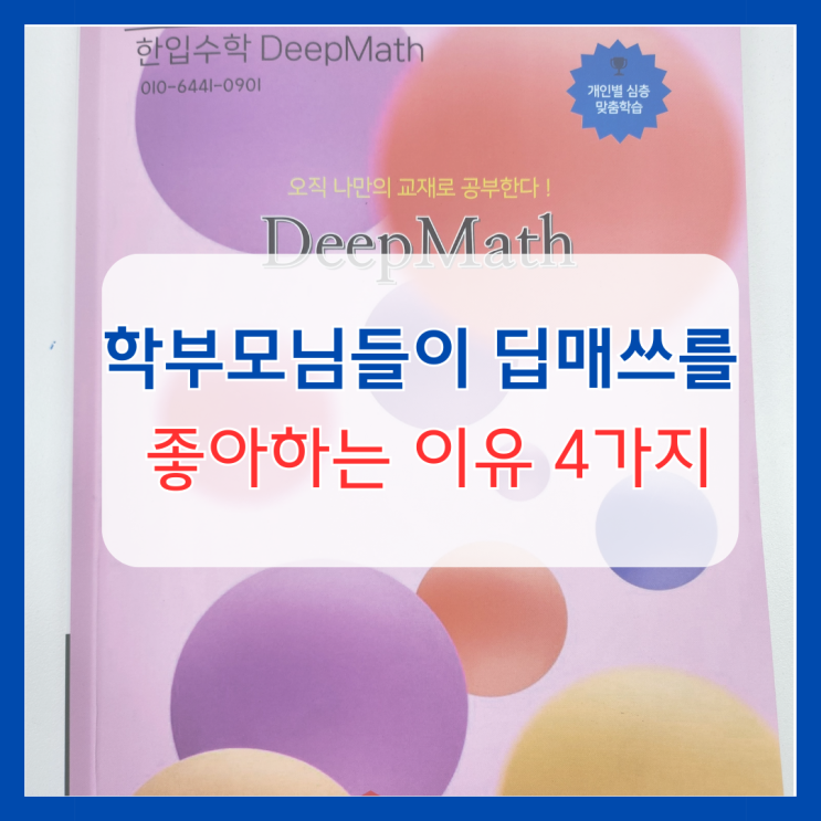 안녕하세요, 거제시 상문동 초등중등 맞춤형 수학 전문 『한입수학』 서주량 원장입니다. 매달 개인 맞춤교재로 수업을 진행하고 있는 한입 수학입니다. 요즘, 방학때이기도 하고 새학기준비로 인해 학원에 문의가 많았습니다. 상담오셨을 때, 딥매쓰를 소개하고, 원생의 교재를 그냥 보여만 드립니다. 그 속에서 제가 말씀 드리지 않아도 답을 알고 계십니다. 그리고 교육에 관심이 조금있으신분들은 앞으로 수학교육에서 필요한 부분이 서술형이고, 딥매쓰 교재가 딱! 이라는 사실도 깨달고 알아봐주십니다. 앞으로 수학은 딥매쓰 시대! 학부모님들이 말하는 딥매쓰가 좋은 이유4가지 ➡️개인별 맞춤 교재 우선, 시중에 있는 교재가 아니라, 내....... <img src="https://blogthumb.pstatic.net/MjAyNjAxMjhfMjgx/MDAxNzY5NTcyNTUxNzI4.zDnWzHeh1aUSTka2oPuvgN8gSLW04cSlbS-0s4vlUjgg.9QlqCnKk21La18RBkzGLFrjU2QS1fTbZV5JjlhWCC6sg.PNG/%C1%A6%B8%F1_%C3%DF%B0%A1_%2857%29.png?type=s3" />