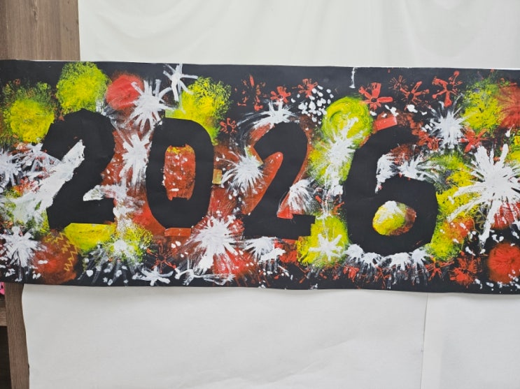 26년도 모두 행복하기를 소망하면서 완성 비닐을 이용해서 불꽃도장~ 친구들이랑 같이 찍어요. 신나게 물감을 찍어요. 붓으로 불꽃 표현하기 <img src="https://blogthumb.pstatic.net/MjAyNjAxMzFfMjk0/MDAxNzY5ODU1OTg1NjE1.PrkEhIpofI1JTPsY99g6NuwAT1Nr9gWMFJHBBY8fmjAg.gV6b9k7ke8BGRSqDbWuC5_n3Is0M25Kf23EfCOdTqEAg.JPEG/900%A3%DF20260116%A3%DF151756.jpg?type=s3" />