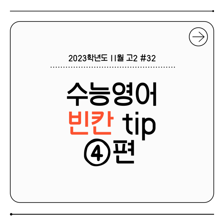 안녕하세요, 목동 학생들의 든든한 학습 파트너! 에듀메이트 학원입니다. 어느덧 [수능영어 빈칸 tip] 시리즈가 4편에 접어들었습니다. 빈칸 추론 유형 4편에서는 모의고사 지문을 통해 '답을 결정짓는 결정적 한 단어'의 힘을 살펴보려 합니다. 무슨 단어일지 궁금하지 않으신가요?! 우리가 오늘 함께 분석할 문제는 2023학년도 11월 고2 모의고사 32번입니다. 문제 먼저 풀어볼까요? 다 풀어보셨나요? 그럼 바로 김송은 선생님의 팁을 공개합니다! '핵심 접속사 'Instead'의 기능을 알면 정답이 보인다. 빈칸 추론 문제를 풀 때, 지문 전체를 완벽하게 해석하고도 선택지에서 갈팡질팡하는 경우가 많습니다. 특히 3점....... <img src="https://blogthumb.pstatic.net/MjAyNjAyMDFfMjA3/MDAxNzY5OTI5MzAxMTc5.pEuL2mKydCjlzdonsTjfUwXT6Q82_C-qjKa272WniCcg.cjyNv2Kq77M6Qtskq7idWGXtU_EPYtHdI_OodWTFyPwg.PNG/%BA%F3%C4%AD_4%C6%ED-1.png?type=s3" />