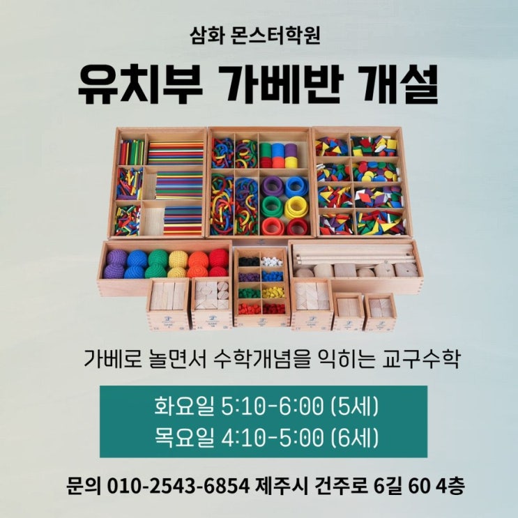 제주시 삼화지구 몬스터학원 5세·6세 가베 교구수학반 신규 개설