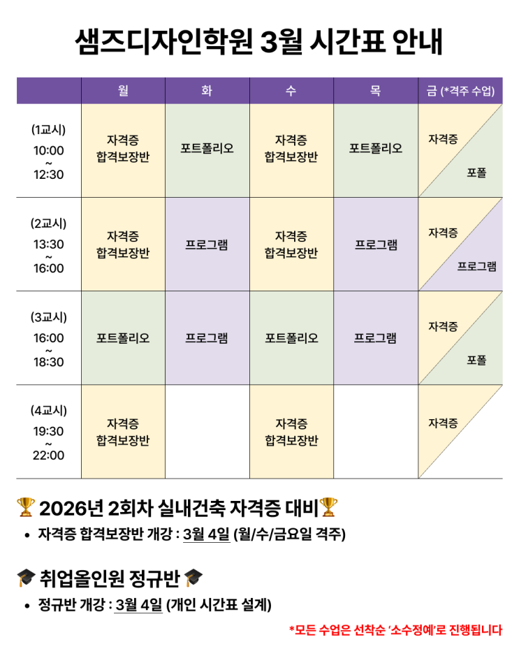 안녕하세요. 부산실내건축기사학원 샘즈디자인학원입니다. 이 글을 읽고 계신 분들이라면, 다음과 같은 생각을 하실 것 같습니다. "자격증 독학 하면 될 거 같은데 굳이?" "학원 다니면 다 합격하는거 아니야? 네, 충분히 공감합니다. 특히 처음 부산실내건축기사, 기능사 학원을 알아보시는 분들이라면 저라도 이렇게 생각했을 겁니다. 하지만 지금부터 제가 하는 말씀을 들어보시면, 여러분께 맞는 공부법과 학원이 어떤 것인지 확실히 판단할 수 있을거라고 생각합니다. 1. 결과로 증명하는 샘즈디자인학원 "합격보장반" 부산 인테리어 디자인 전문 샘즈디자인학원의 2025년 합격 결과는 압도적이었습니다. 2025년에....... <img src="https://blogthumb.pstatic.net/MjAyNjAxMTlfOTAg/MDAxNzY4ODEwMTU0MzE1.0reYln6tZP1HouScCdLQYARBxf689GrpTuqYkRH7TMgg.4Xpy8ltTieMaYJifnQ8h0mWMzxnXh5bXxcoFqFNFMIkg.PNG/3%BF%F9_%BD%C3%B0%A3%C7%A5.png?type=s3" />