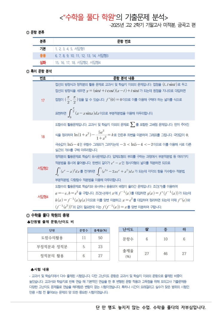 -2025년 고2 2학기 기말고사 미적분, 금곡고 편