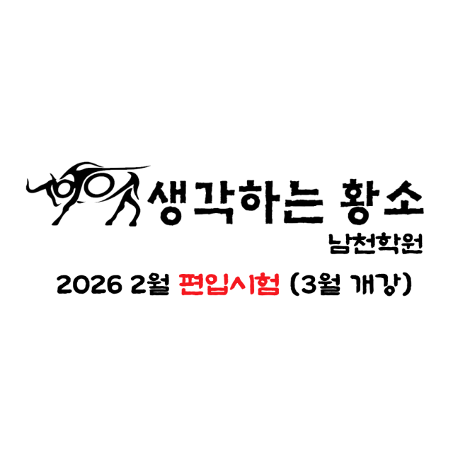 2월 입학 시험과 편입시험은 중복 응시가 가능합니다. ■ 시험장소: 생각하는 황소 남천 학원 (부산 수영구 남천동로 10번길 18 태회빌딩 2층) ■ 준비물: 연필, 지우개 ■ 응시료 없음 ■ 예약: 네이버폼 https://naver.me/5NM8rvZC 또는 010-8574-1380(문자), 051-611-1380 ■ 양식: 응시일/응시과정/학년/학교/학생이름 ■ 시험일 : 2월 07일, 21일, 28일(토) 3시 (시간변경가능) ■ 시험시간: 1시간 50분(공통) ★주의사항 ■ 아래 여러과정의 중복응시 가능합니다. ■예약시 응시과정 정확하게 기재하여 합니다. ■각 과정 별 중복 응시가 가능합니다. ※ 본지점 내 중복 응시할 경우 모집과정에 따라 개별 예약하셔야 합니다. ■타지점 중....... <img src="https://blogthumb.pstatic.net/MjAyNjAxMTZfMjIy/MDAxNzY4NTQ3MDI1ODE2.wk-2lCF1Kj5CdpqUSWamEWZT5bwZW4T9rAwJ197N5EYg.yqmhw8vyo8fPYA-VlI-HdxgQxgV-KQGmxpN4Oh3-OOwg.PNG/image.png?type=s3" />