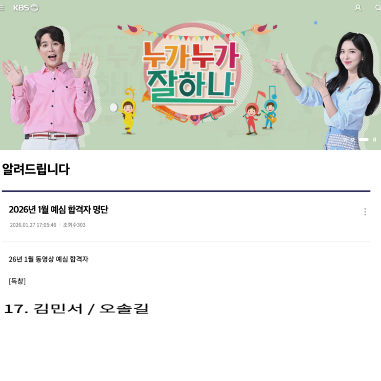 안녕하세요, 위드유 음악학원입니다 KBS <누가 누가 잘하나> 1월 예심에서 저희 동요 Class ✨김민서✨ 학생이 합격했습니다 연말부터 연초, 좋은 소식들이 많은 위드유 음악학원입니다 방송 무대도 최선을 다해 준비하겠습니다 교육과목 피아노/동요 010-3268-5300 인스타그램 위치 수성3가롯데캐슬 상가 약국 건물 3층 <img src="https://blogthumb.pstatic.net/MjAyNjAxMjhfNDAg/MDAxNzY5NTY5NTc5MTQz.-gbZnBjLWUCSJbcuJJclwesmOADHGpVBWhxRiTFIv7Qg.jjhuyA7weHqtI-C8ZwTaO0CqS4UAKGcWrNpffI9GlYQg.PNG/IMG%A3%DF1125.PNG?type=s3" />