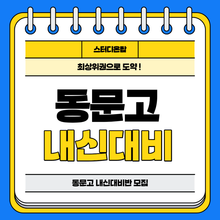 안녕하세요. 스터디온탑학원입니다. 재원생들 학교 발표가 지난주에 마무리되면서 타겟 내신반 오픈됨을 알려드립니다 ^^ “이 정도면 잘 본 거 아닌가요?” 하지만 성적표를 받아보면 생각보다 등급이 아쉬운 경우가 많습니다. 동문고 내신은 시험이 쉬운 편임에도 불구하고 서술형에서 점수가 갈리며 체감 성적이 낮아지는 경우가 잦습니다. 그래서 동문고 내신은 처음부터 전략이 필요합니다. ✔ 동문고 내신, 이렇게 대비합니다. 동문고 내신 시험은 전반적인 난이도는 높지 않지만, 국·영·수 교과서 개념과 학습활동을 얼마나 정확히 이해했는지를 중점적으로 평가하는 특징이 있습니다. 특히 고난도 문제와 변별 문항은 객관식이 아닌 서술....... <img src="https://blogthumb.pstatic.net/MjAyNjAyMDFfMjM1/MDAxNzY5OTUzMDgyNjI4.uRYRmbo43ubRpeC1kt1QUFPQId-uJSor0cVIpbU9Ubkg.5S4HVNoPIXxRGSQm2ZNQS05Mbpn_XzrpxL7hESto8YYg.PNG/1.png?type=s3" />