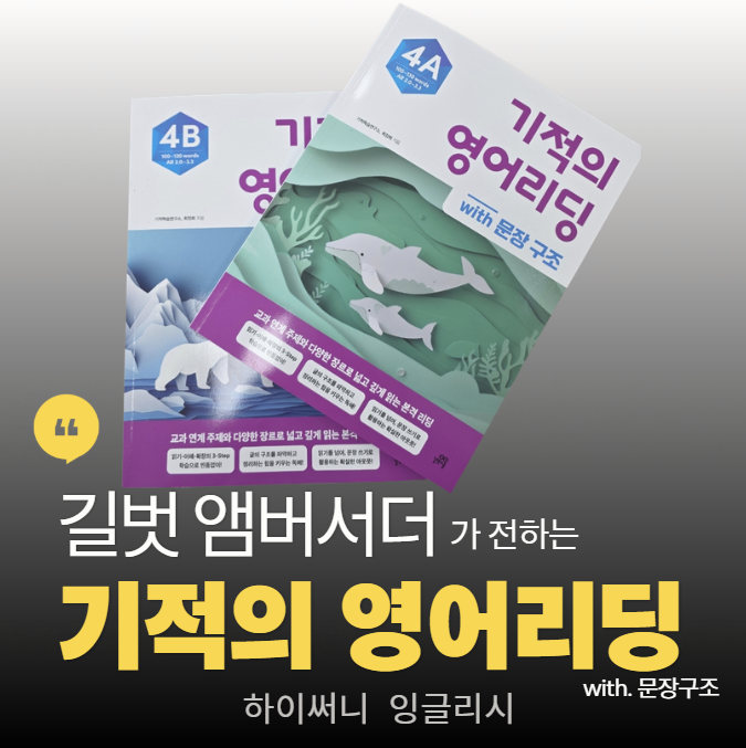 초5 영어 독해 고민, 기적의 영어리딩 4 검수하며 찾은 해답 (대천동 하이써니) 안녕하세요! 대천동, 유천동, 월성동, 진천동 우리 아이들의 탄탄한 영어 문해력을 책임지고 있는 하이써니 잉글리시 원장입니다. 한샘초, 신월초, 용천초, 한솔초 학생들이 고학년으로 올라가며 꼭 거쳐야 할 필수 코스, 영어 리딩'에 대해 이야기해보려 합니다. 특히 이번 포스팅은 제게 더욱 특별한데요. 바로 길벗스쿨의 베스트셀러, <기적의 영어리딩 Level 4> 교재에 제가 직접 검수 위원으로 참여했기 때문입니다! 단순한 리뷰를 넘어, 교재를 한 줄 한 줄 검토하며 느낀 전문가의 시선과 우리 지역 아이들에게 왜 이 책이 최고의 선택인지 정성....... <img src="https://blogthumb.pstatic.net/MjAyNjAzMjJfMTM3/MDAxNzc0MTY2NTA3MDk0.orn8ubZStLfy5b4Eo4DrHdYdlzPD7DNk1zp9bTDeBIQg.KRACQk5g4iFrHf6nuFUBJGUzOijEcKbQQmiJK2MRuw4g.PNG/image.png?type=s3" />