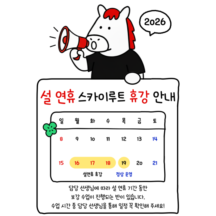 설 연휴 스카이루트학원 휴강 안내입니다 :)