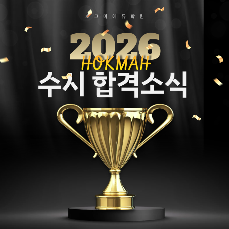안녕하세요. 호크마에듀학원입니다. 2026년도 두번째 수시 합격자 발표가 있겠습니다! 영종고3 김○은 학생 한양대 합격!!! 너무 축하드립니다!!! 합격은 끝이 아니라 새로운 시작입니다. 앞으로의 모든 도전을 호크마가 응원하겠습니다!! <img src="https://blogthumb.pstatic.net/MjAyNjAxMjhfMTU1/MDAxNzY5NTkwNDI3NjMy.ROrsIzmikj2SlgVfTzH6g14DCyMmTlMImxQ0jVNxbAQg.hmesaicnoNtr0wwy06Ec-Z3BaCMMCFJJwKG21Z-Vfmsg.PNG/%C1%A6%B8%F1%C0%BB_%C0%D4%B7%C2%C7%D8%C1%D6%BC%BC%BF%E4_%2832%29.png?type=s3" />
