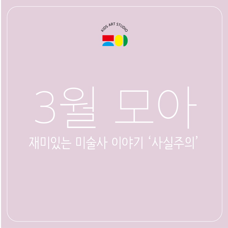 ❤️ 안녕하세요 모아미술입니다 서창동 모아미술학원에서는 연 2회 미술사 수업을 통하여 미술의 역사를 알고 이를 통해 미술과 한층 더 친해지는 시간을 갖고 있습니다 다양한 시대와 문화권의 예술 작품을 만나며 미술에 대한 이해를 넓히고 지식을 쌓고 있어요! 2026년 3월의 미술사 수업에서는 '사실주의' 사조에 대해 알고, 작품을 감상하였습니다 사실주의, Realism 사실주의란 정말 사진처럼 똑같이 그리는 것을 뜻하는 미술 사조일까요? 글쎄요, 우리의 생각과는 조금 달라요! 사실주의 미술은 이전 시대 화가들이 즐겨 다루었던 영웅, 신화, 상상 속 장면이 아니라 우리 주변의 평범한 사람들과 일상적인 순간을 있는 그대로....... <img src="https://blogthumb.pstatic.net/MjAyNjA0MDJfMjEy/MDAxNzc1MTA2MzA2MzA1.MNCsWIp6a_Yi0MqirPZQeTMUvhzRzOqlzTM7jEdSD-cg.TyI6FrXe_CgQdvqyZwVexu_-OKtJWh6d3SdSXKobsg0g.PNG/%BA%ED%B7%CE%B1%D7_%BD%E6%B3%D7%C0%CF_%B4%EB%C1%F6_1-01.png?type=s3" />
