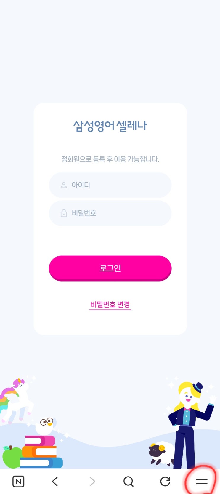 인천광역시 동부교육지원청 제 1262호 서창삼성영어교습소 교습과목 : 영어 안녕하세요 초중 중등 영어전문 삼성영어 셀레나 서창한빛교실 Amy입니다. "삼성영어셀레나 이러닝 학습" 휴대폰 바탕화면에 바로가기 만들기를 준비해봤어요. 그럼 시작합니다~ 1. 네이버에 "삼성영어 이러닝센터" 검색 후 홈페이지를 클릭해주세요. 2. 우측하단에 두줄을 클릭해주세요 3. "홈 화면에 추가"를 클릭해주세요. 4. 추가를 눌러주세요~ 이렇게 하시면 바탕화면에 바로가기가 만들어져요~ 설명대로 하시면 어렵지 않으실거에요 :) 설치가 어려운 학부모님들께서는 Amy에게 톡 남겨주세요. 친절하게 설명해드릴게요~ 서창한빛....... <img src="https://blogthumb.pstatic.net/MjAyNjAyMDNfNTEg/MDAxNzcwMDQ5MTQ3NjY1.j2fQPHDMiwxF7SLHfU1_691RDDyfdK3C5BPMTKRMyy0g.sIMHgGb1dqmsso-ZIG39gng_3M2AOdPEcbZM_Gzks3Ag.JPEG/KakaoTalk_20260203_011330903_02.jpg?type=s3" />