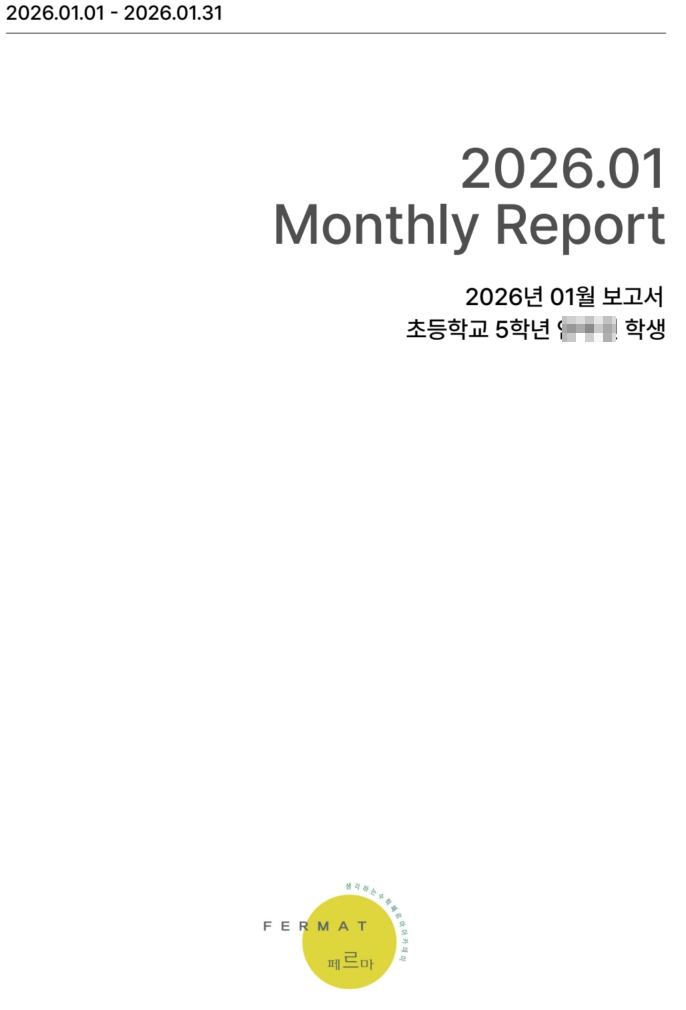 "선생님, 솔직히 말씀해 주세요. 우리 아이 학원 가서 진짜 공부하고 있는 거 맞죠?" 학원비는 매달 나가는데, 아이한테 물어보면 "그냥 했어"가 끝. 뭘 배우는지, 어디가 부족한지 알 길이 없으시죠. 저도 세 아이 아버지입니다. 그 답답함, 충분히 압니다. 안녕하세요, 삼산동·부평 지역에서 2005년부터 21년째 수학 교육을 이어오고 있는 부평 페르마 수학학원입니다. 그래서 준비했습니다. 말이 아닌 숫자로 증명하는 학습 관리, 부평 페르마의 스마트 분석 리포트입니다. 1. 복잡한 숫자 나열? 이제 '그래프 한 장'이면 끝 진산중, 삼산중, 구산중, 부원중, 부원여중, 부평여중, 산곡중, 산곡남중, 산곡여중....... <img src="https://blogthumb.pstatic.net/MjAyNjAyMDNfODAg/MDAxNzcwMTA5OTA0Mzk5.E7zlMEdcV3lFa7MH2V2Y9U_oFPWzXmvfB5UftITi4-cg.u1DO3miqLgd2dQtLH3Ur_a8H10rB119GKg9L7aWkzuwg.JPEG/0101.jpg?type=s3" />