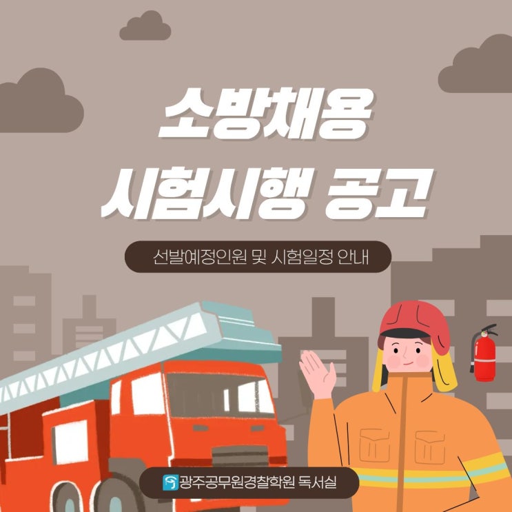 안녕하세요! 전대후문 가성비 독서실 '광주공무원경찰학원 독서실'입니다! 1) 최종합격자는 최초 임용된 날부터 5년 이내에는 다른 시도로 전보(인사교류 등)가 제한될 수 있음. 2) 시험일정, 선발예정인원 등의 변경사항이 있을 경우 소방청누리집 및 국가공무원채용시스템(https://gongmuwon.gosi.kr)을 통하여 재공고합니다. □ 경채 선발예정인원 소방공무원 채용시험 응시연령 하한 기준 통일 시험 일정 소방청 원본 공고 PDF 자유롭게 다운받으세요! 빠르고 정확한 공무원 채용 정보는? 광주공무원경찰학원 관리형 독서실 ; 이런 점들이 좋아요! 전대후문 근처, 북구청 맞은 편 ● 철저한 스파르타 관리 시스템 (출석체크, 휴대....... <img src="https://blogthumb.pstatic.net/MjAyNjAxMDdfMjA0/MDAxNzY3NzUyNzA2ODc2.5l_8xZbqELsiMaNsMrVWX_i3GeFsumx8Ldz806AV3-Ug.SvLQ3L-nNK3TsQH2xXnIzuepdt7czZykQpvqrZwqyhMg.JPEG/2.jpg?type=s3" />