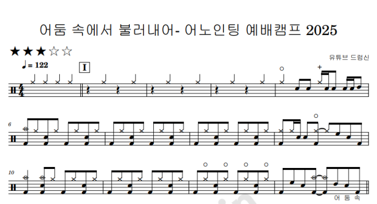 어둠속에서 불러내어 - 어노인팅 예배캠프 2015ㅣ 드럼 악보