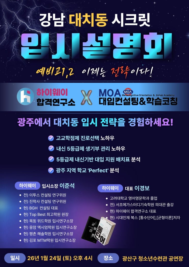 MFA수학학원 입시설명회 안내 입니다. 우리 초등부 학부모님께서도 참석하셔서 요즘 입시 트랜드와 경향을 들어보시는 것도 좋을것 같아요~~ 많이 참석 하셔서 유익한 정보 얻어가시길 바랍니다^^ 자세한 내용은 아래 블로그를 참고 해 주세요^^ https://blog.naver.com/mathfirstacademy/224127170548 https://blog.naver.com/mathfirstacademy/224127172624 신청은 학원 또는 원장님께 해 주세요 학원 062-710-6656 H.P 010-4629-6656 <img src="https://blogthumb.pstatic.net/MjAyNjAxMDlfMTYw/MDAxNzY3OTQ0ODQ0MzY0.S6v7PMEZI_B1RHim3K_YHBOjwQ0BhEkSNjdpBZQID-8g.A4CaeCOOWTmzTAntMr95ki5EBLEyh5JR6fFRiJxZZEQg.JPEG/%C1%A6%B8%F1%C0%BB_%C0%D4%B7%C2%C7%D8%C1%D6%BC%BC%BF%E4_%284%29.jpg?type=s3" />