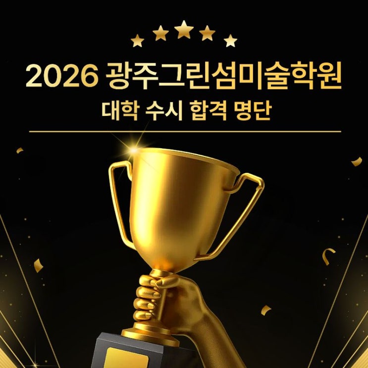 2026년도 대학 수시 전형에서 광주그린섬미술학원 수강생들이 정말 우수한 합격 성과를 거두었습니다. 치열했던 입시의 순간들 속에서, 끝까지 포기하지 않고 자신의 실력을 믿으며 묵묵히 준비해 온 학생들 덕분에 또 한 번 뜻깊은 결과를 만들어낼 수 있었습니다. 그 과정 하나하나를 지켜봐 온 입장에서 수고했고, 정말 잘해냈다고 진심 어린 응원의 박수를 보내고 싶습니다. 그동안의 노력과 시간이 이렇게 ‘합격’이라는 결과로 이어진 만큼 이 성과는 학생 개인에게도, 그리고 저희 광주그린섬미술학원에게도 무엇보다 값진 기록으로 남게 되었습니다. 이제 2026학년도 광주그린섬미술학원 대학 수시 합격 명단 함께 자세히 살펴보도록 하....... <img src="https://blogthumb.pstatic.net/MjAyNjAxMDhfMzAg/MDAxNzY3ODYxMDYzNDk0.K_7Q3bjVhlrM-Vwpg34bO9ZgQLky-CKvOgpWJSmbbbAg.vkqUBAtRE9ElMPWWW6UFwMT8VSggsZiz9Gjg85bwb7wg.JPEG/1.jpg?type=s3" />