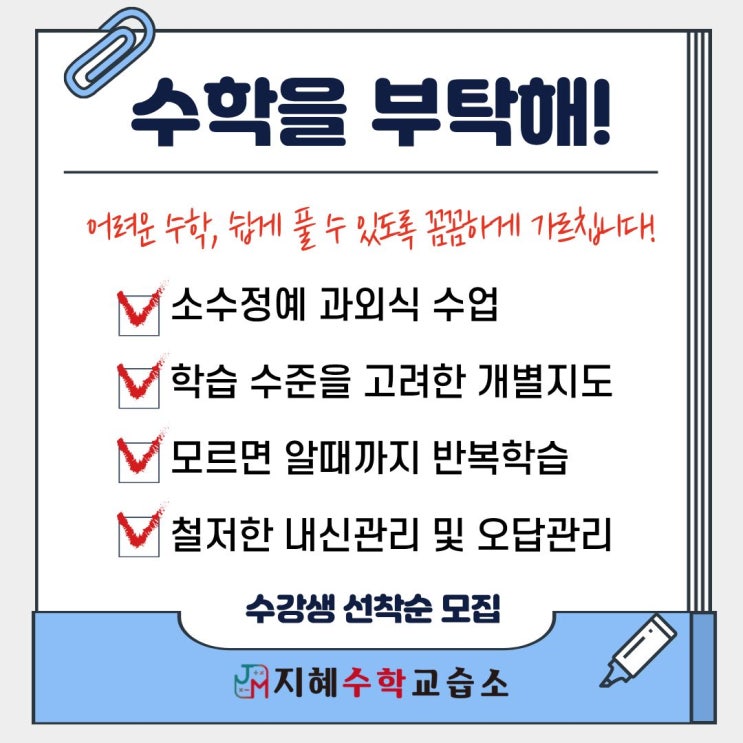 안녕하세요. 스마트해법 강생수학입니다. 영어 학습을 하다 보면 문장이 길어지면서 갑자기 난이도가 높아졌다고 느끼는 순간들이 있어요. 특히 ‘앞 문장을 좀 더 자세히 설명하는 구조’가 등장하면 아이들은 어려움을 느끼는 경우가 많죠. 그래서 오늘은 스마트해법영어에서 아이들이 가장 자주 질문하는 문법 중 하나인 관계대명사를 어떻게 쉽게 이해하도록 돕는지 소개해보려고 합니다. 개념을 처음 접하는 아이들도 부담 없이 시작할 수 있도록 정리해드릴게요! “ 관계대명사절, 어렵지 않게 시작해요! “ 영어 문장을 조금 길게 만들거나 설명을 덧붙이고 싶을 때 꼭 필요한 문법이 바로 관계대명사절이에요. 단어도 생소하고 구조도 낯.......