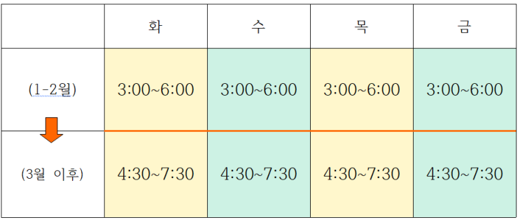 [전진수학 송촌] 2026 1학기 수업 시간표